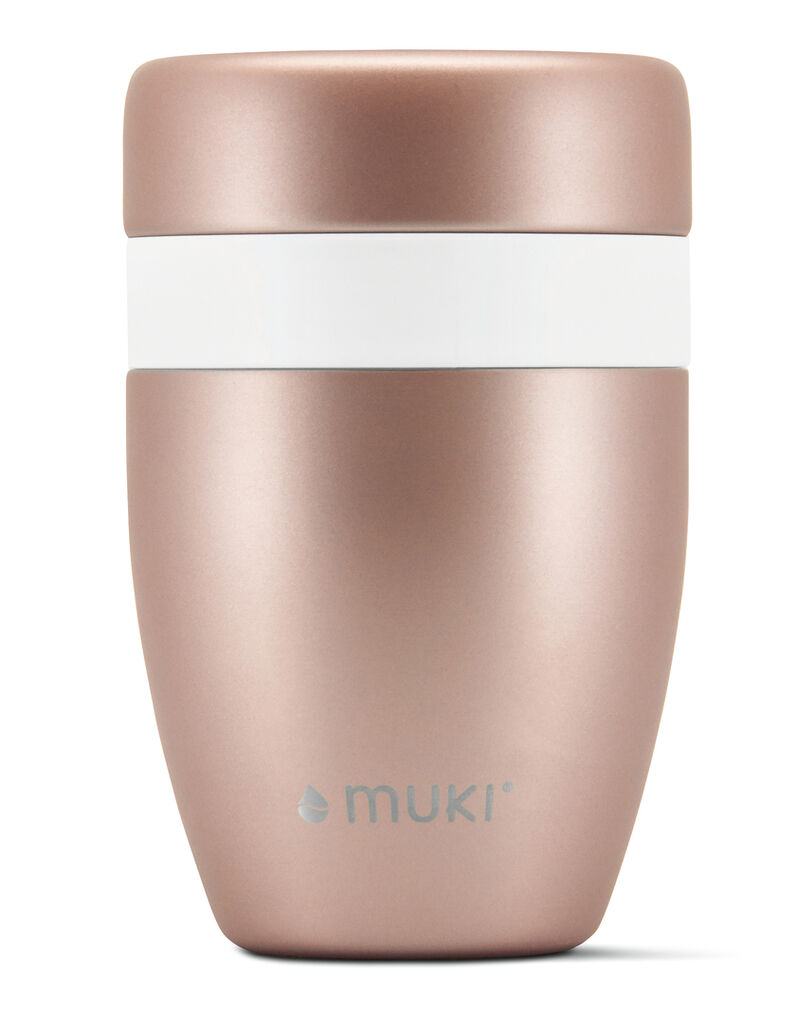 muki is a stylish snack pot which allows users to take their food wherever they go. It features a compact design, fits easily into any bag and does not leak. Thanks to its good insulation properties, it keeps snacks hot or cold for several hours. The snack pot is divided into two compartments by an intermediate lid and thus allows the separate transport of foods which are supposed to be combined only when consumed, such as milk with cereals, vegetable sticks with dips or coffee with biscuits.