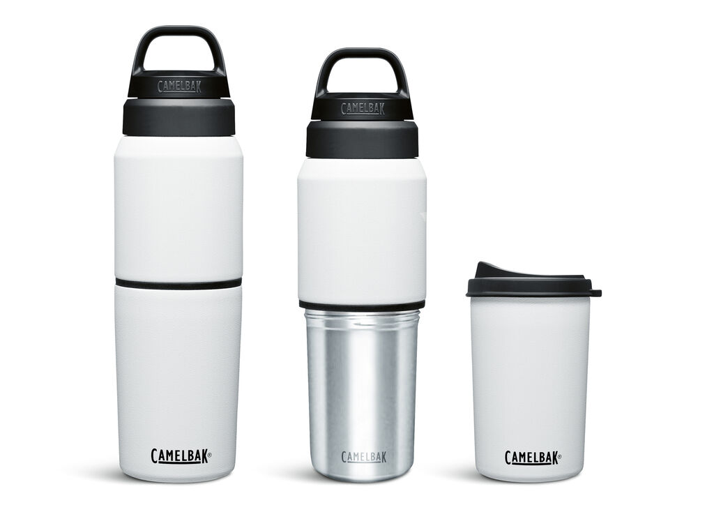 MultiBev is a 2-in-1 vessel that offers a convenient and versatile solution for reducing disposable waste, simplifying your daily routine, and sharing beverages with friends. Consisting of a bottle paired with a nested tumbler, MultiBev separates into two distinct beverage containers, then collapses back into a single form when done. Vacuum-insulated stainless steel keeps beverages the perfect temperature for hours.