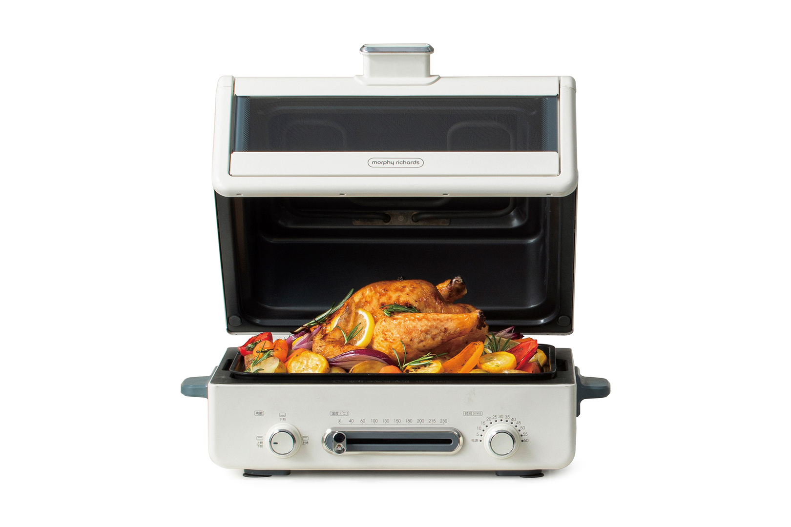 This unconventional electric oven has a top-opening mechanism that flips up. The design not only allows for the integration of various cooking methods such as baking, frying, grilling and roasting, but it also makes cleaning the inner cavity simple.