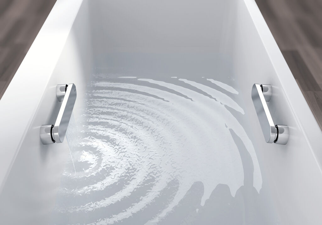 Multiplex Trio 5 is an integrated structural element characteristic of new bathroom trends and is positioned as a design “element of the bathtub”. Whether adjusted electronically or manually by turning it, Multiplex Trio 5 offers the right solution for every situation. This ultra-flat unit works together with the integrated water inlet to provide more space in the bathtub and make it easier to clean. Even on the reverse side of the bathtub, the unit is positioned at an extremely low level and is therefore eminently suitable, if a particularly slim bathtub construction is desired.