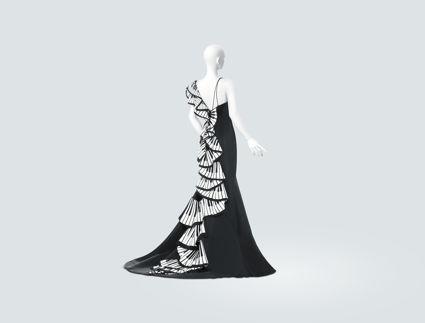 Whether it’s a ball gown dress with floral wings or a daring mix of metal and vegan leather, the imaginative gowns of the Museum Collection by Luly Yang are considered wearable art. Much more than just festive garments, the collection is a combination of great artistry and expertise, high-quality craftsmanship and numerous technical innovations – for example in the production of the fabrics or digital printing. These textile works of art, for which the human form serves as a canvas, are produced by selected experts in hundreds of hours of work.