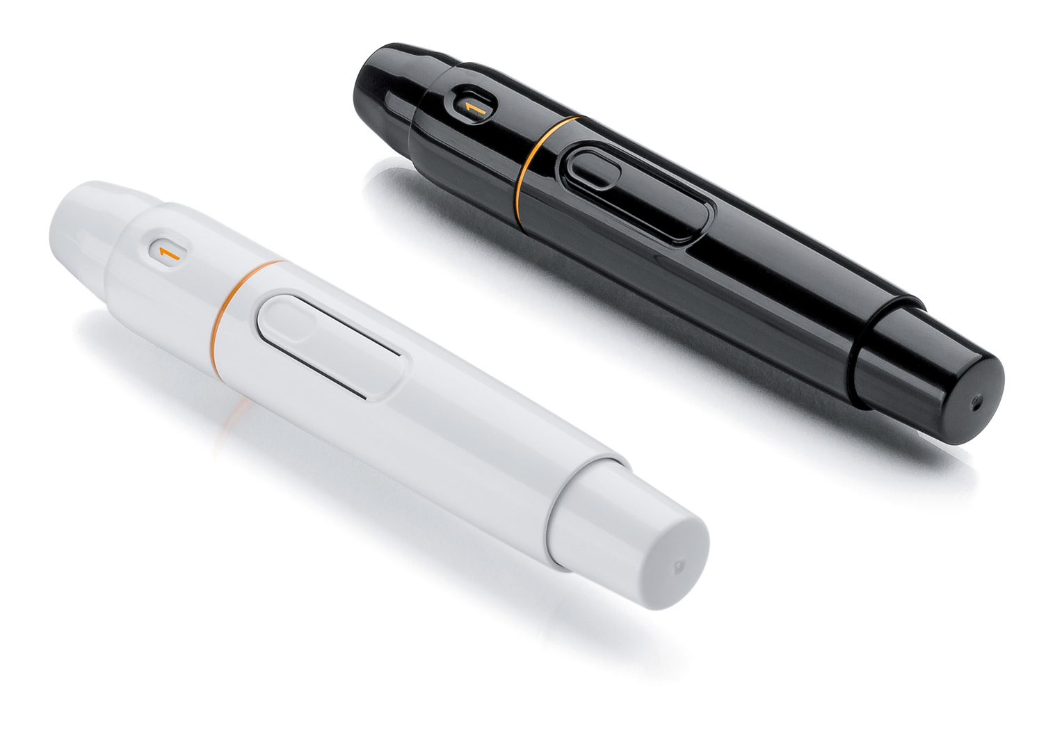 This seamlessly designed lancing device impresses with its simplicity, which enables particularly discreet use.