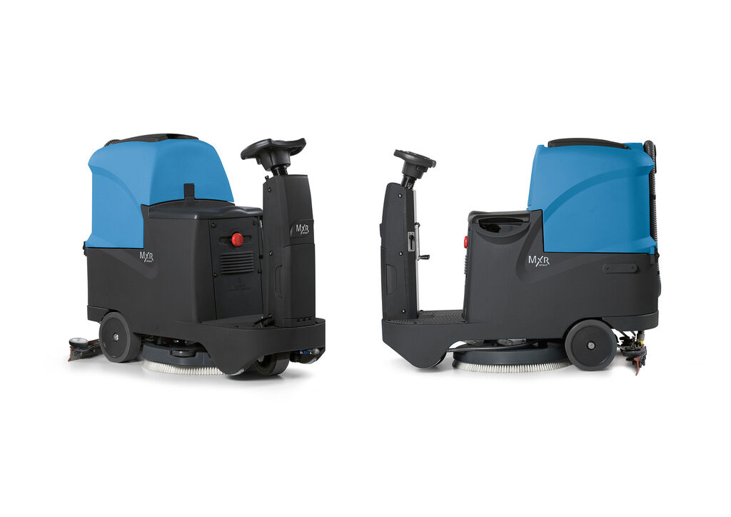 Mxr is a ride-on floor scrubber-dryer for professional floor cleaning. Thanks to its compact size, it can replace a walk-behind model. Instead of pushing the machine, the user can assume a comfortable sitting position. Moreover, the unit is particularly environmentally friendly: it is mostly made of recyclable materials and the number of components has been reduced. Harmonious proportions and a special steering-wheel shape give the machine an individual look and provide the user with a comfortable driving experience. All controls are positioned on the steering wheel, making it easier to operate. The scrubber-dryer is exceptionally quiet, which makes it suitable for versatile use in a wide variety of settings.