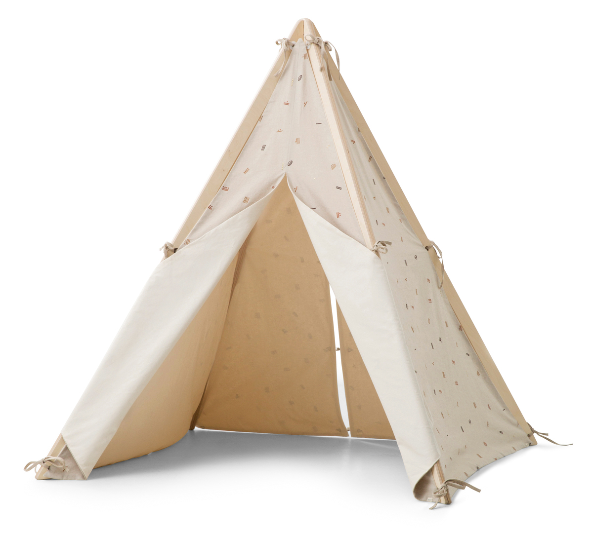 This play tent offers children a refuge where they can play without being seen. The four frame members are made of birch wood. Their edges are rounded in order to minimise risk of injury. They are simply fitted together and form a stable base. The fabric of high quality cotton is available in different patterns and colours and opens on all four sides.