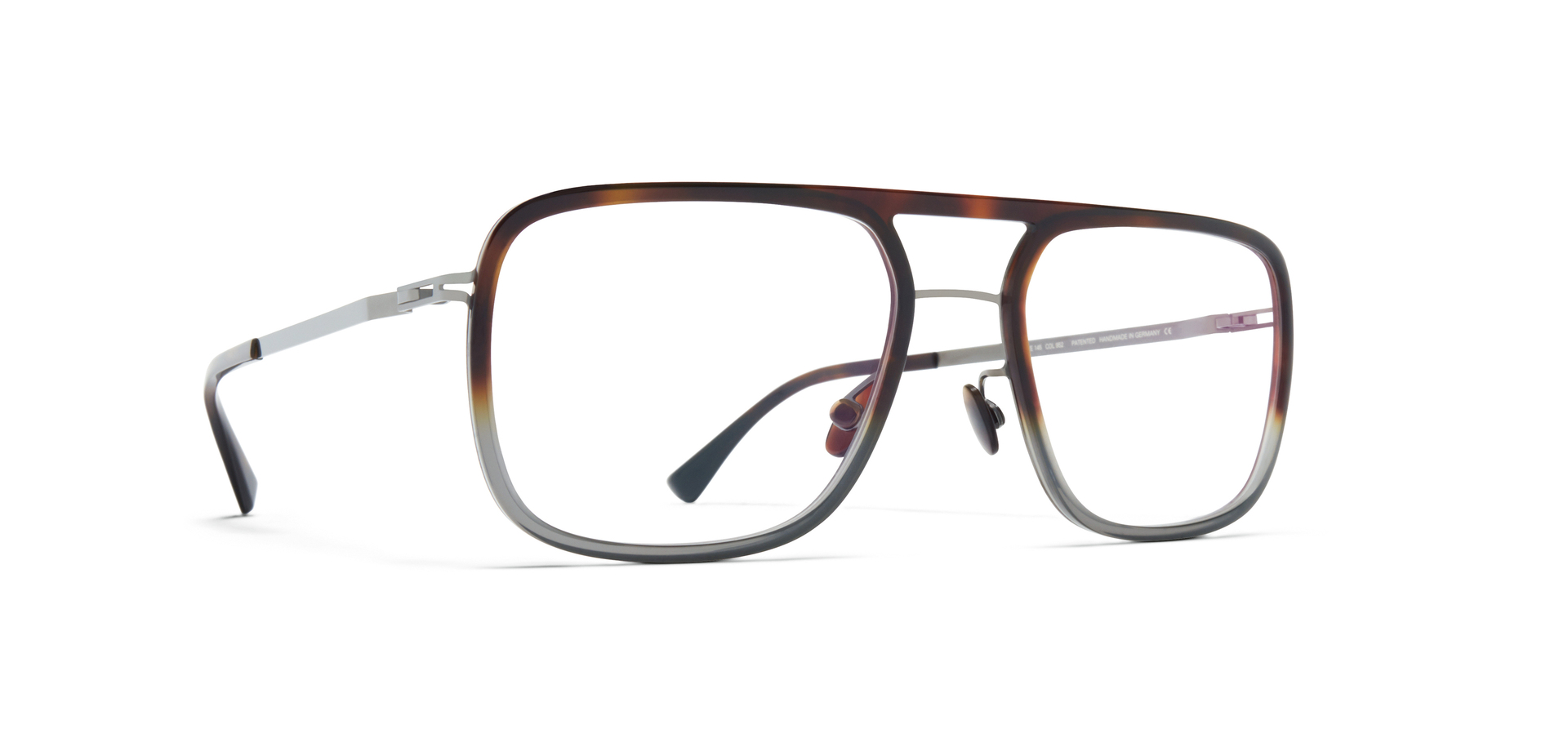 The ELGARD model of the MYKITA LITE collection conveys the impression of being a pure acetate pair of glasses. A closer look, however, reveals a filigree stainless steel construction that adds stability to the acetate front. The frame is manufactured using a multistep engineering process during which precision-milled acetate rings are mounted in the 0.6-mm-thin stainless steel frame of the front. Muted colours and discreet colour gradients emphasise the casual character of these navigator-style glasses.