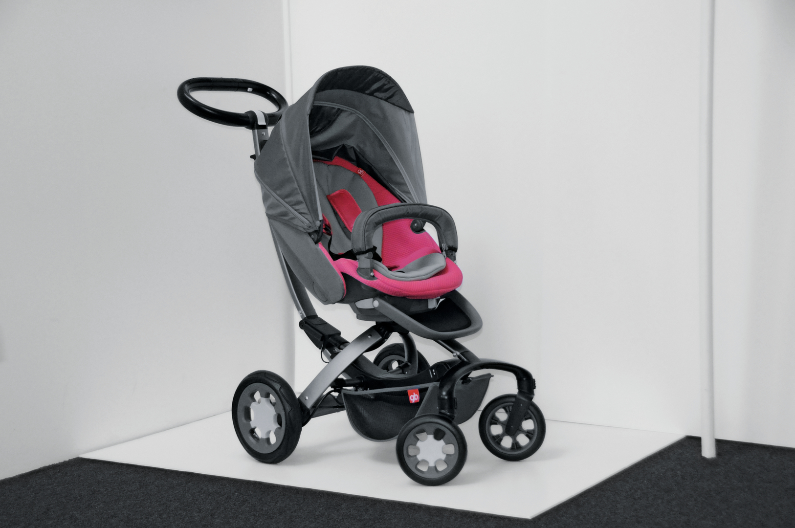 The design concept for the Myotronic baby pushchair is based on a powerful language of form, yet it also possesses necessary qualities of cosiness and security. This impression is initially evoked by the distinctive, curved tube that conveys not only stability but also a sense of energy and dynamism. This tube additionally serves a very practical function as it holds the adjustable push handle. The seat can be rotated 360 degrees while in use, creating a safe, cocoon-shaped environment for the child at all times. And for steeper gradients, a battery-powered electric support drive reduces the strain of tiresome pushing, even on rough terrain.