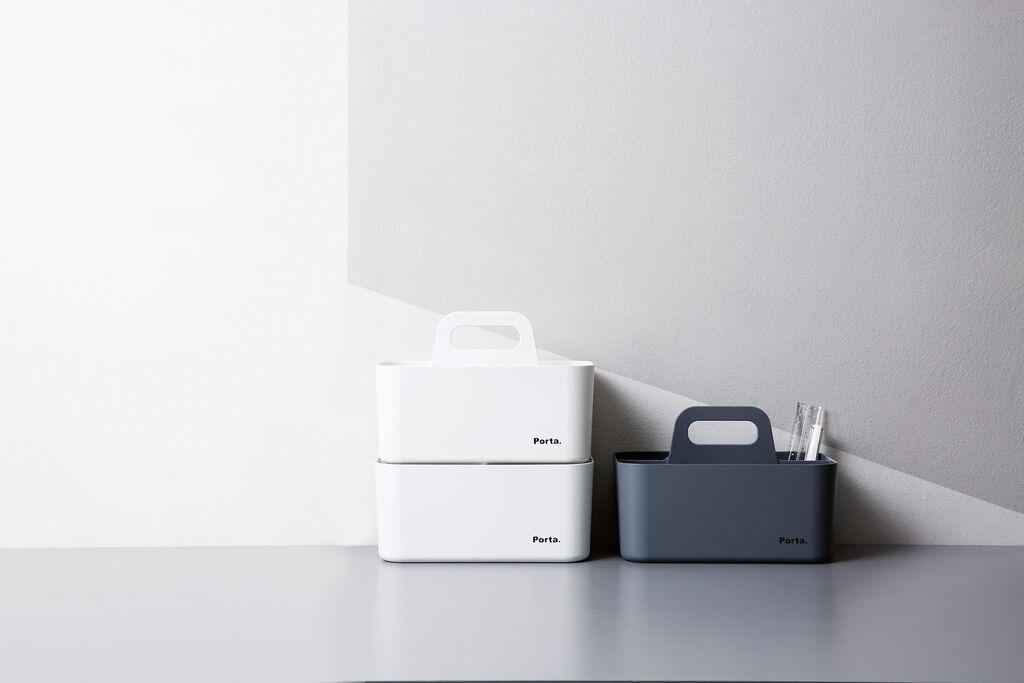 Featuring a purist appeal, this storage caddy was designed to accommodate a variety of household things. It is available in timeless colours, which harmoniously blend in with different interiors. In addition, the various colours facilitate an orderly arrangement of individual utensils. The space-efficient Myroom Porta Compact is easy to stack without losing stability, while the large handle loop makes it possible to carry the boxes conveniently.