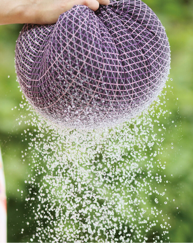 Furoshiki is a traditional Japanese square cloth, which is used to wrap and carry items. This new Furoshiki model is made of a 1 x 1 metre piece of polyester that effectively protects the contents against water – be it a gift, a sandwich or a shopping purchase. The cloth is likewise suitable for outdoor use, where it replaces the plastic bag, and it doubles as umbrella or even bucket since it can carry up to 10 litres of water.