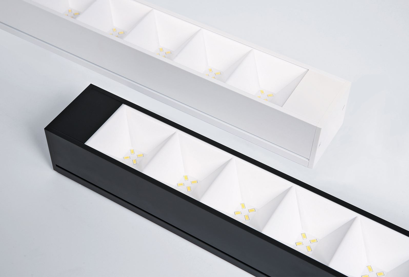 The design concept of the Nari LED luminaire was inspired by nature. Its petal-like reflectors are made from high-quality reflective sheets and achieve a clear light quality. The individual reflectors seamlessly merge with each other. Groups of four LEDs, which are reminiscent of the stamen of a flower, are arranged to allow even distribution of light. With an energy-efficiency of 120 lm/W, Nari can be used flexibly in various environments as a surface-mounted light, pendant light, or running light.