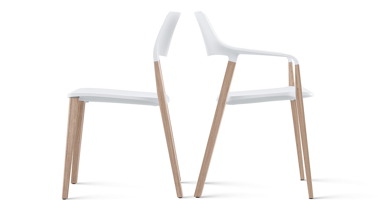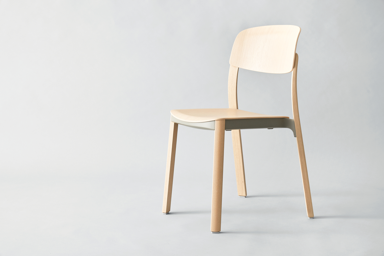 The design of the nate stacking chair is defined by the combination of plywood technology and modern manufacturing techniques using sustainable materials. Wafer-thin plywood and sturdy solid wood are joined to a frame made from 100 per cent recycled plastic – without using any glue. This construction method makes for a chair that is both robust and lightweight. With a subtle aesthetic that means it blends in naturally with any surroundings, this fully recyclable chair is also very comfortable thanks to its organic lines.