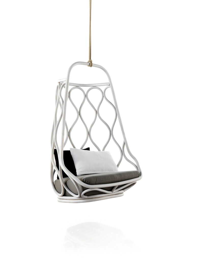 Nautica is a hanging chair that pays homage to one of the first pieces created by the manufacturer in the 1970s. Its swing-design intends to surprise and rethinks the use of rattan. No matter if it hangs from a tree branch or a floor-standing structure, Nautica stands out thanks to the subtle play of shadows that reminds of the reflection of sunlight falling on ocean waves. Despite its visual lightness, the chair is notable for its sturdiness and resistance.
