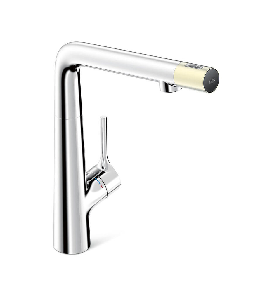 The contrast between silver tap body and gold-coloured tap head contributes to the elegant, high-quality impression of the Neat tap. The functional properties are equally convincing.