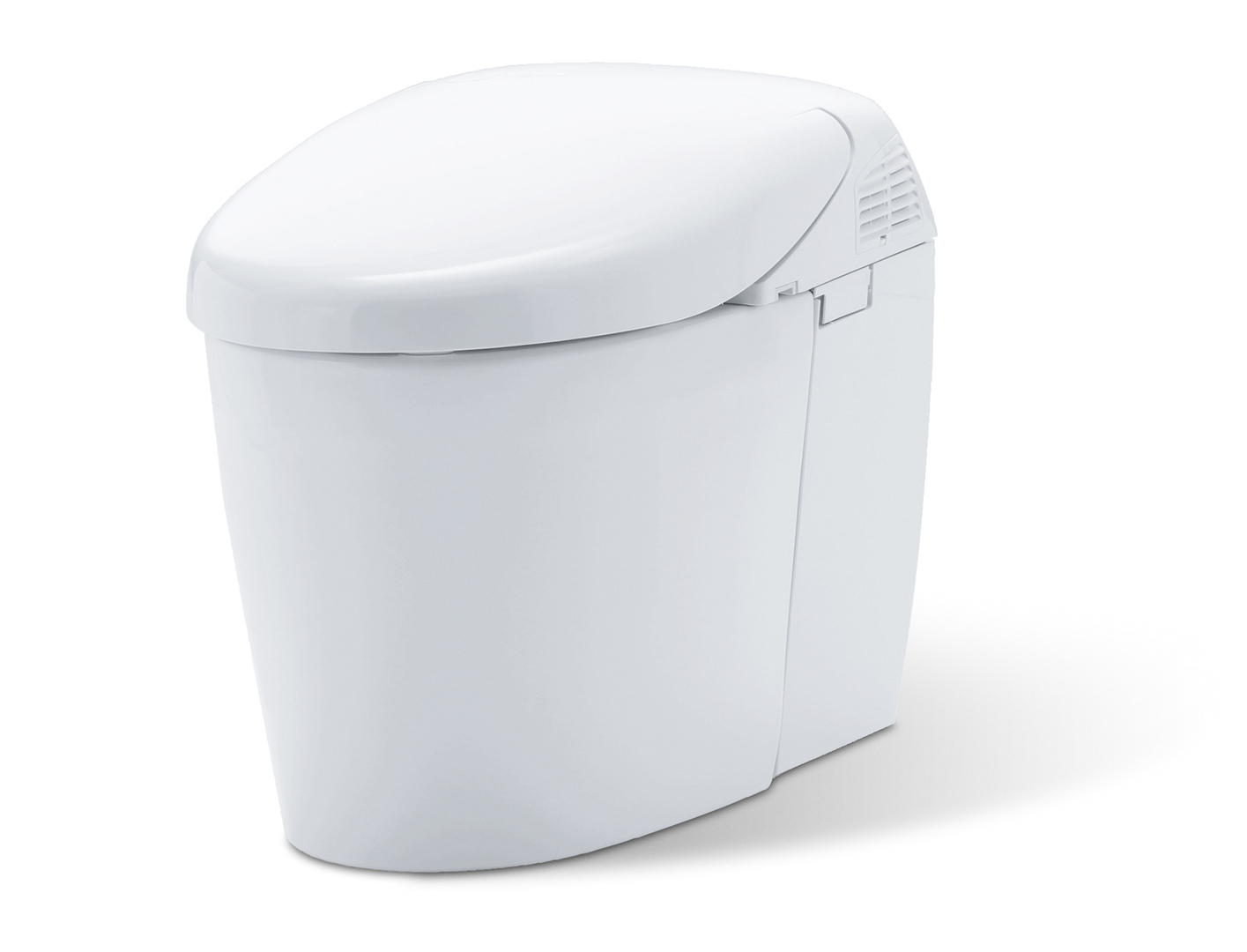 The shower toilet features a warm-water massage and cleansing system. It also disperses electrolysed tap water, which reliably disinfects, deodorises and also removes dirt on the bowl and in the nozzles. A pump-driven water tank, direct pressure from the water pipeline as well as a two-flush system of 3.8 and 3.3 liters provide for environment-friendly usage. The rounded lid and bowl with gradually tapering edges convey a feeling of coherence and an unobtrusive familiarity.