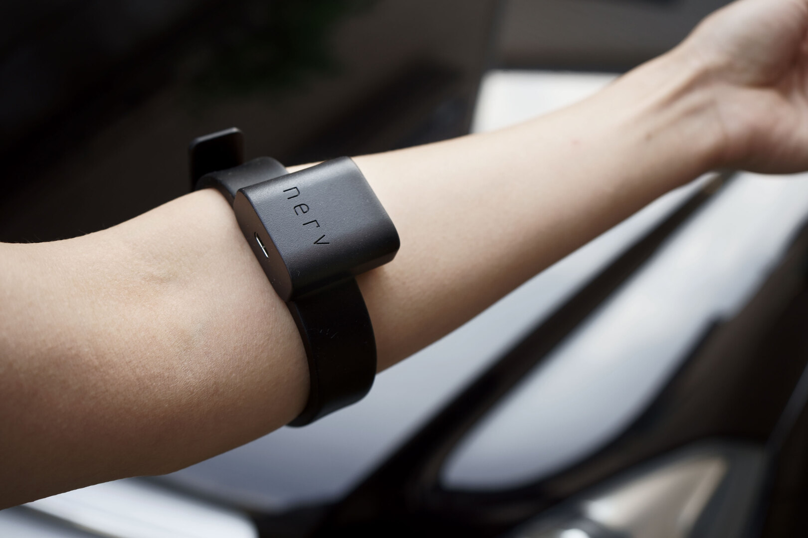 nerv is designed mainly for senior drivers who are less conscious of their driving capabilities. The driver can drive their car as usual while the wearable device monitors muscle displacement. It provides ease of use without needing to invest in costly smart cars. nerv is embedded with a 14-channel optical muscle displacement sensor that detects minute movements at the skin level down to muscle level. The input is passed into an AI engine which translates muscle displacement into information such as strength applied, hand gestures, finger movements or stress alerts. Studies reveal that when gripping force is applied onto the vibrating steering wheel, it’s an indication of the discomfort of the driver. Various other negative emotions related to dangerous driving are also built up through increasing muscle tension. In terms of styling, complex mechanical elements are eliminated to retain a seamless exterior. The main body is made of elastomer, which allows the device to be firmly wrapped around the body, aligning the sensor to targeted muscle groups. It is meant to be attached to the forearm or the calves to visualise the ‘force applied’ on the steering wheel or the accelerator/brake respectively. The body tension is visualised on a graph in real time, identifying increases in strength that occur during dangerous driving. The designers envision third-party instructors (AI and humans) using 5G communication to provide driving instructions remotely. Red Dot Award: Design Concept | Concept | Bionics