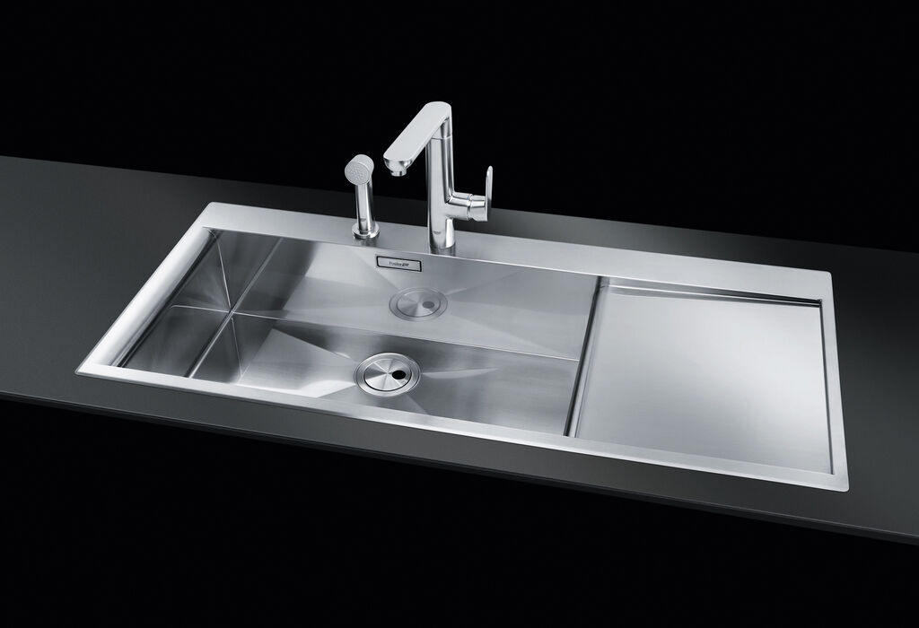 The wave element of the side edges, the distinctive draining board and the diamond ground of the basin impart an exclusive impression to this stainless steel sink.