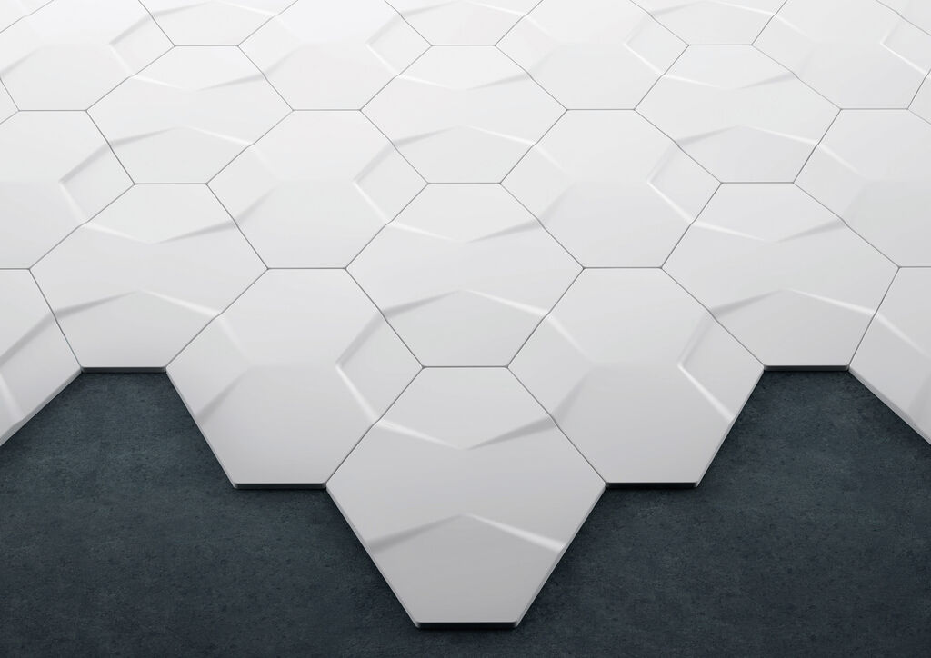 Nexus embodies the geometric perfection of nature and is inspired by the structure of the carbon atom. The collection consists of hexagonal tiles in two relief designs called Penta and Hexa. Both styles can be laid horizontally and vertically to produce a versatile honeycomb pattern. The variety of the tiles is increased by the number of possible colour combinations, as well as glazed or matt silk surfaces. This turns the Nexus range of tiles into a strong design element for offices, hotels and restaurants, but also for living rooms or bedrooms, kitchens and bathrooms, giving each their individual interior design flair.
