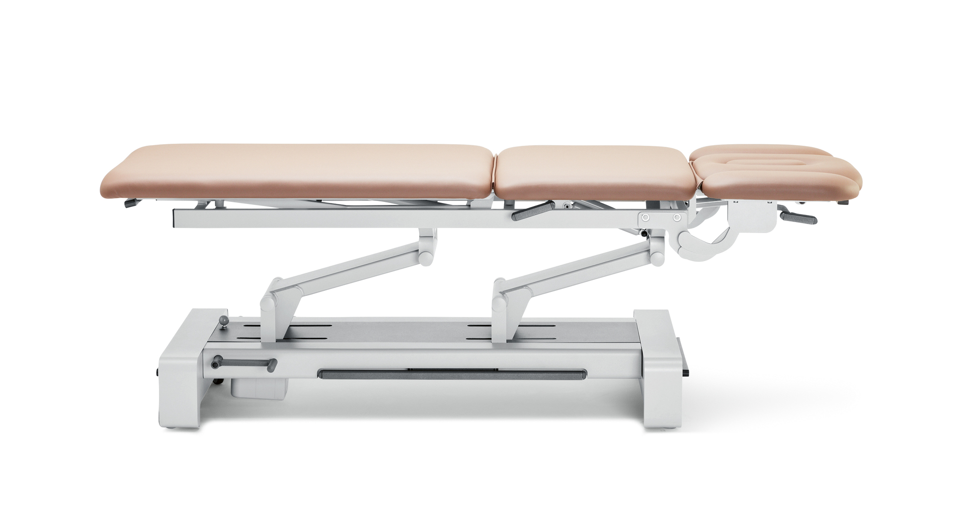 The treatment tables of the NEXX series provide high stability for all kinds of physiotherapy as well as optimum access to the control elements and extra legroom. With the integrated lift mechanism, the table can be easily lifted and lowered. Its control bar, which is integrated into the base, ensures flexible height adjustment of the table. A wide selection of base colours, upholstery shades, head sections and other features allows the tables to be customised to specific needs.