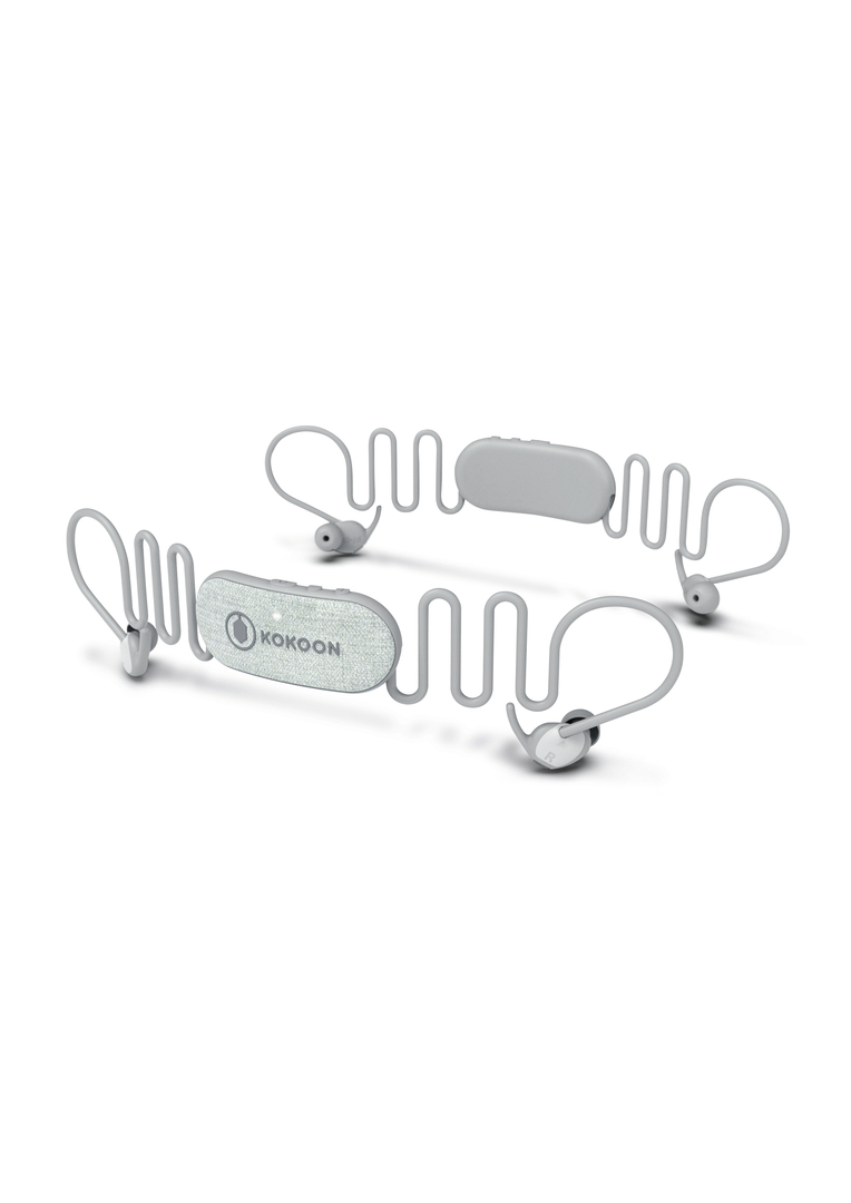 NightBuds are headphones with a sleep sensor. In combination with the MyKokoon app, they promote and improve sleep. The electronics have been relocated from the sensitive in-ear-region to a less sensitive area behind the head, so as to give stable, comfortable use, even when sleeping on one’s side. This leaves only a thin, soft profile in the ear. A flexible cable system has been developed to accommodate differing head and ear sizes.