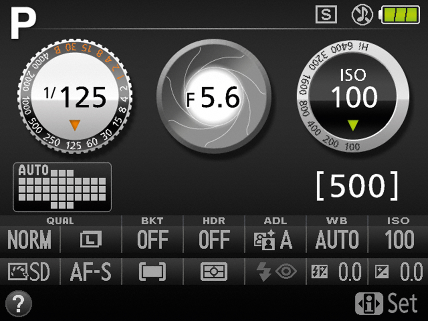 The info display of the Nikon D5200 DSLR camera shows the three most important elements in determining exposure at a quick glance. Shutter speed, aperture value and ISO sensitivity are represented through animated, camera-like graphic representations, while other settings are displayed at the bottom. As settings are adjusted, the respective dials rotate, thus graphically indicating the user’s actions in a natural and intuitive way. The option of changing the info display to Nikon’s classic layout caters to experienced photographers.