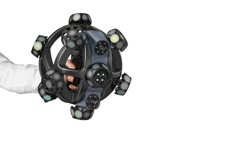 The wireless 3D scanner system “NimbleTrack” creates portability and practicality thanks to its compact size, low weight and slim design. The intelligent carbon fibre mould structure has both aesthetic and functional benefits, as it enables convenient one-handed operation and at the same time ensures stability. Thanks to modern technology and processors, fast scanning at 120 images per second is achieved. Moreover, it features a powerful optical tracker, which can be easily placed in complex scenarios thanks to its compact size.