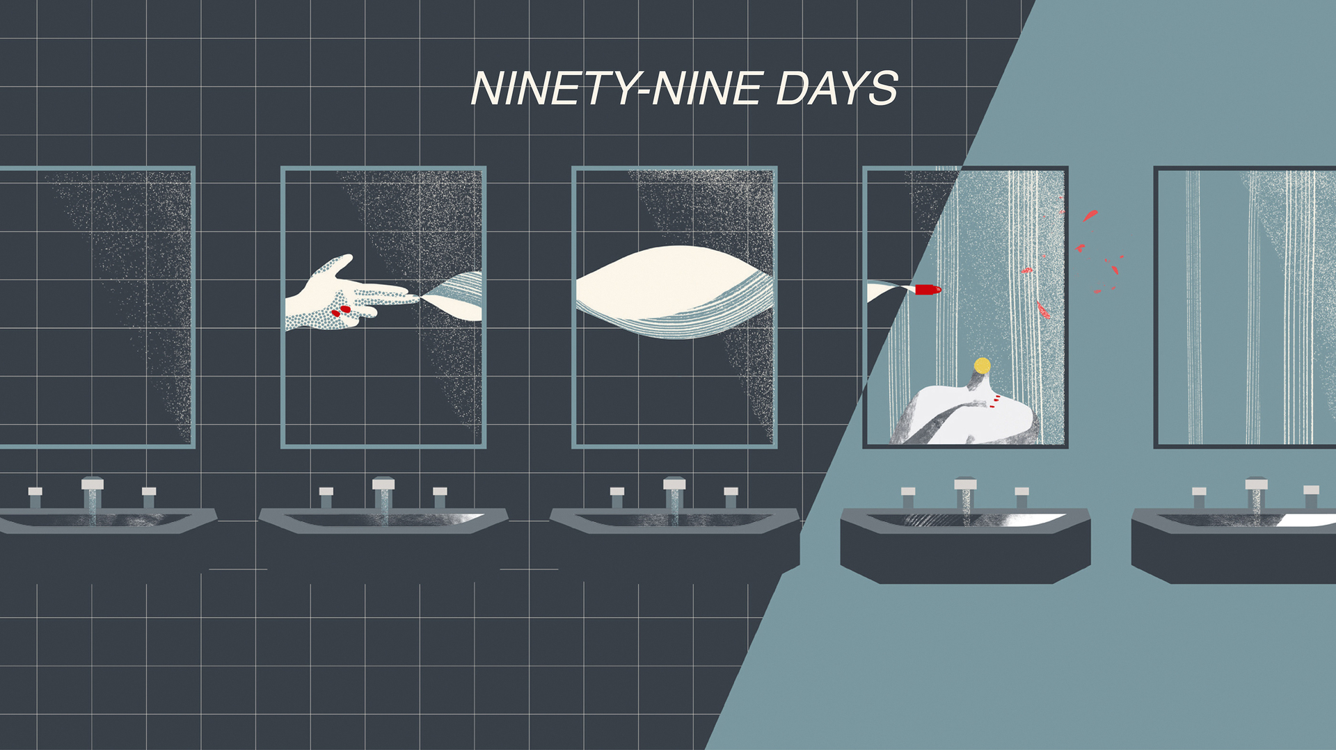 “Ninety-Nine Days” tells a personal story about coping with the experience of being a stranger. The short film begins with a shooting scene. It triggers dream-like sequences with a flood of acoustic and visual stimuli, in which balloons are the guiding elements. The way out of the chaos is finally indicated by a doorway. The symbolic threshold to the outside world can be crossed as soon as the protagonist embraces the unknown. Using simple graphic means, the animation succeeds in expressing complex psychological processes such as anxiety or the feeling of being overwhelmed in a poetic way.