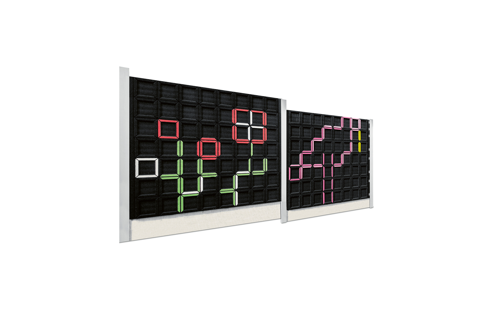 The noba digi mini system offers an inventive solution to soundproofing and noise control in public spaces. This noise barrier is sustainable and a good exam-ple of circular design as it uses recycled rubber from old tyres. Just four car tyres are needed to make 1 sqm of the sound absorbing panels. The unique decor is inspired by the aesthetics of digital graphics and allows for almost limitless versatility. By using the colour highlights, it is possible to create any structure desired, from stylised figures to completely abstract patterns.