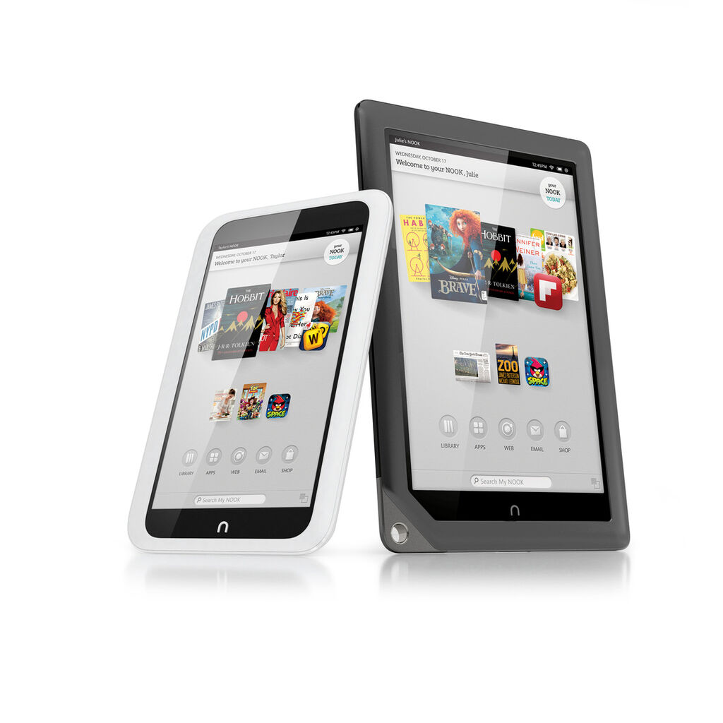 Nook HD and HD+ are 7“ and 9“ tablets that can be used as e-readers. The durable, lightweight devices feature a coated back providing comfortable haptics. The front has a raised bezel, with sloped edges that move towards the back in a contour designed to fit the curve of a palm. This approach enables the tablets to be held in the hand comfortably over a longer period of time.