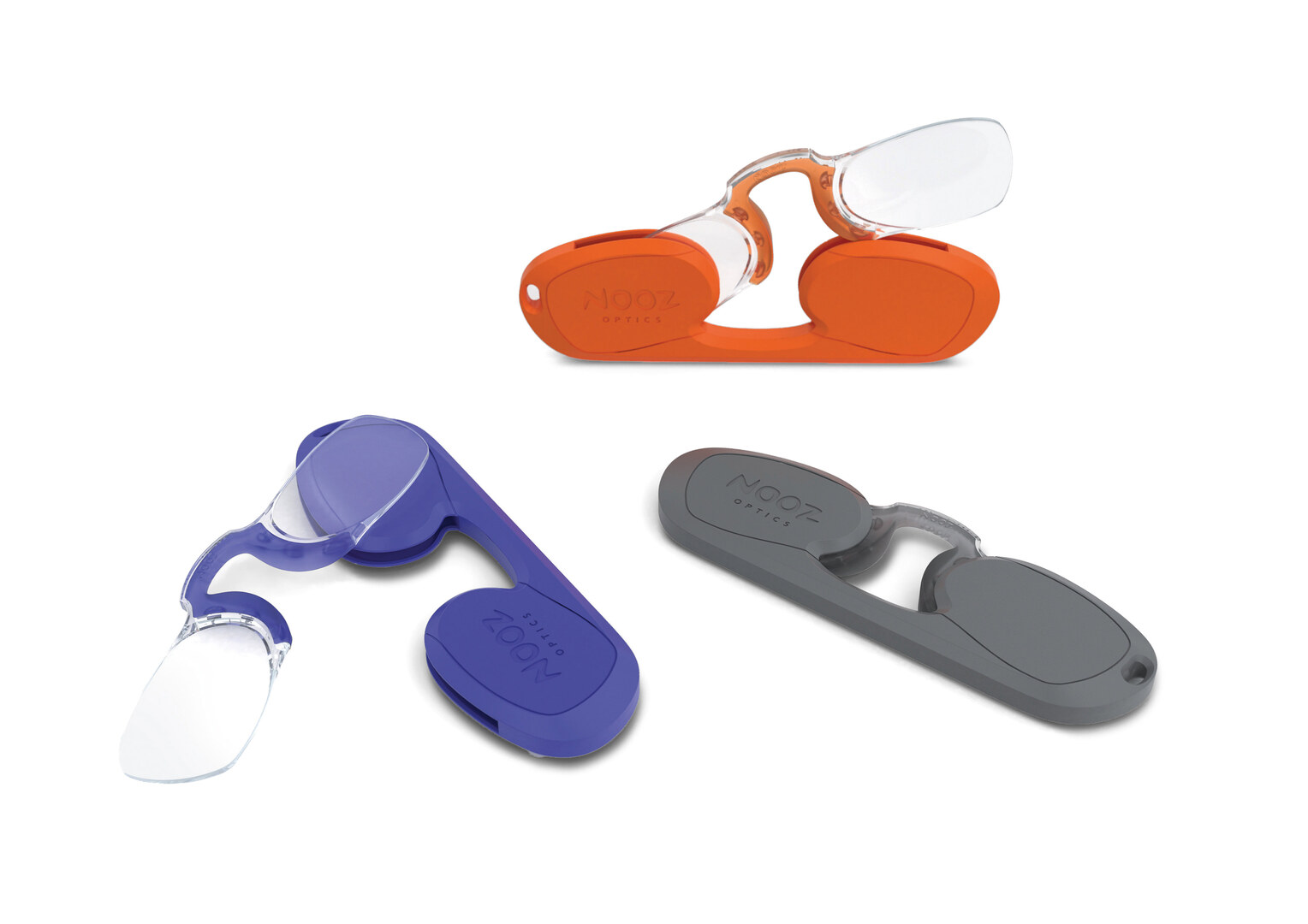 NOOZ weighs only six grams and is provided with a case which is precisely shaped, in which the backup reading glasses can be carried everywhere with you. By means of a small eyelet, the cover, which is supplied in various, fashionable colours, can be attached to the key ring or hung around the neck. The bridge is of non-slip elastomer and assures reliable, pressure-free grip on almost any nose shape. The glasses do not need a frame. The lenses are made of clear polycarbonate and are treated with scratch protection.