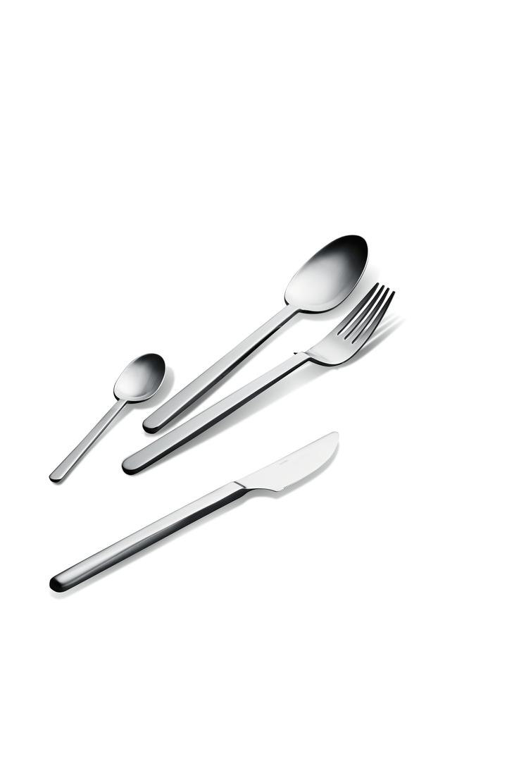 The design concept of Norm focused on creating a cutlery set whose strict Nordic simplicity has a visual and tactile charm. Thanks to its ergonomic design idiom, the cutlery should feel like a natural extension of the hand. Rounded geometries sit comfortably in the palm and form sculpture-like contours. The matt stainless-steel surface also emphasises the purist character of the five-piece cutlery set.