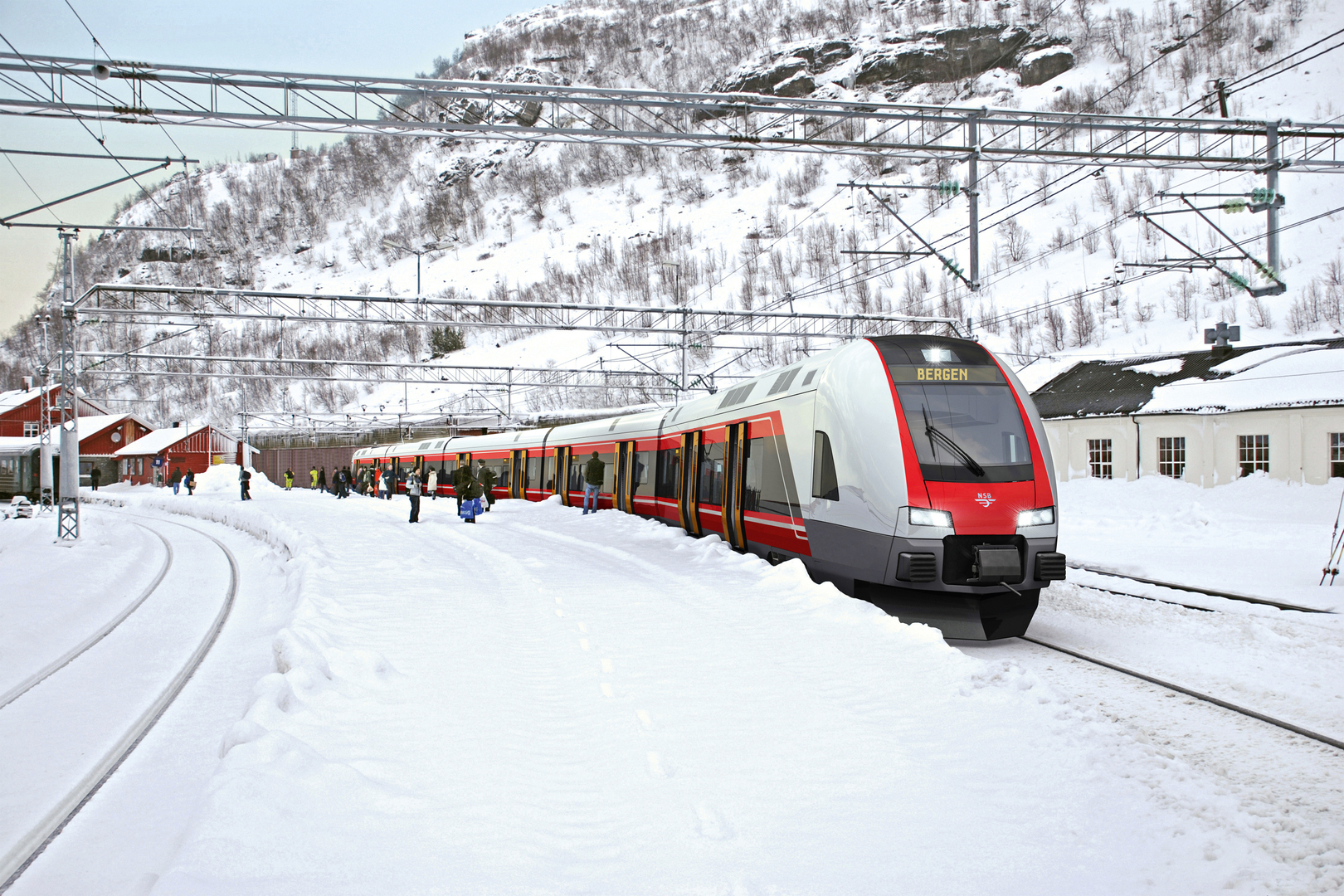 The raw climatic conditions and geographical characteristics of Norway place very high demands on the design of trains operated by Norwegian State Railways. The robust front of the NSB-Flirt train assures reliable operation even when confronted with snowdrifts and icy temperatures. To the interior, an interplay of warm and cool grey tones along with indirect lighting creates a timeless Nordic atmosphere, providing the necessary degree of ease and comfort, even on very long journeys. At night, the peripheral areas are dimmed in order to provide passengers with a sense of security. All of the furniture elements, such as luggage racks and partitions, are independent modules. This flexibility allows the operating railway company to respond to changing customer needs with a minimum of conversion work.