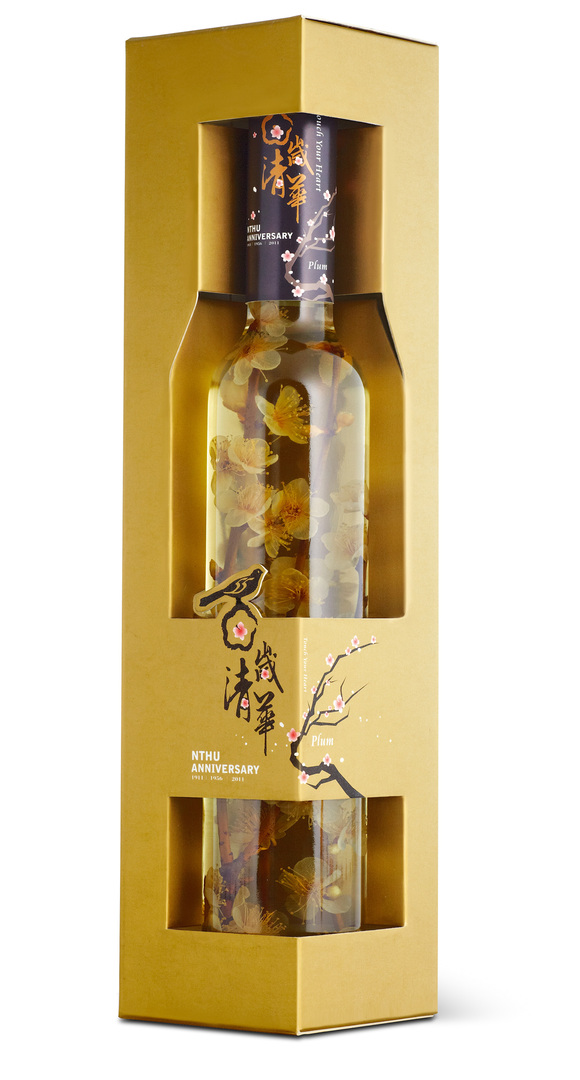The National Tsing Hua University was established in China in 1911 and is located in the Tsing Hua Garden in Beijing’s western suburbs. Originally called “Tsing Hua School”, the university section was founded in 1928. To celebrate the university’s 100th anniversary, a memorial liquor collection was launched. The plum flowers were preserved and placed into the bottle through a special process, keeping them in blossom, which is their most beautiful state. The open concept of the outer package allows the customer to see the flowers directly through the bottle, which does not feature any additional label.
