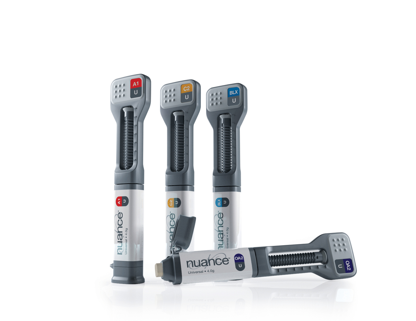 The design of the Nuance composite syringe enables dental professionals to dispense valuable nano-composite resin in precise amounts of 0.1 gram per half turn. The cap achieves enhanced protection of the light-sensitive filling material. On the side there is a visual indicator with calibrations, which makes it easier to gauge the remaining filling material. The thread pitch and handle design ensure precision and increase the ease-of-use.