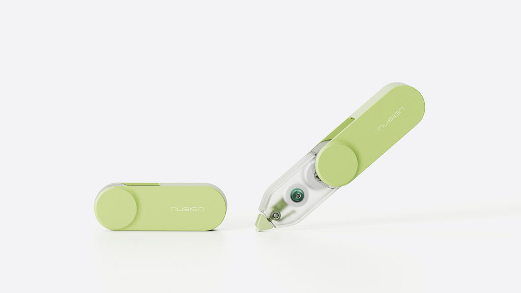 A convenient twist mechanism allows the NUSIGN Flip Correction Tape to be folded into a compact shape when not in use. The ergonomic design and patented rebound silencing mechanism, which also reduces noise while using the correction tape, ensure precise application and easy handling. Refill cartridges reduce the waste of resources, while pastel colours combined with transparent plastic create an attractive visual contrast.