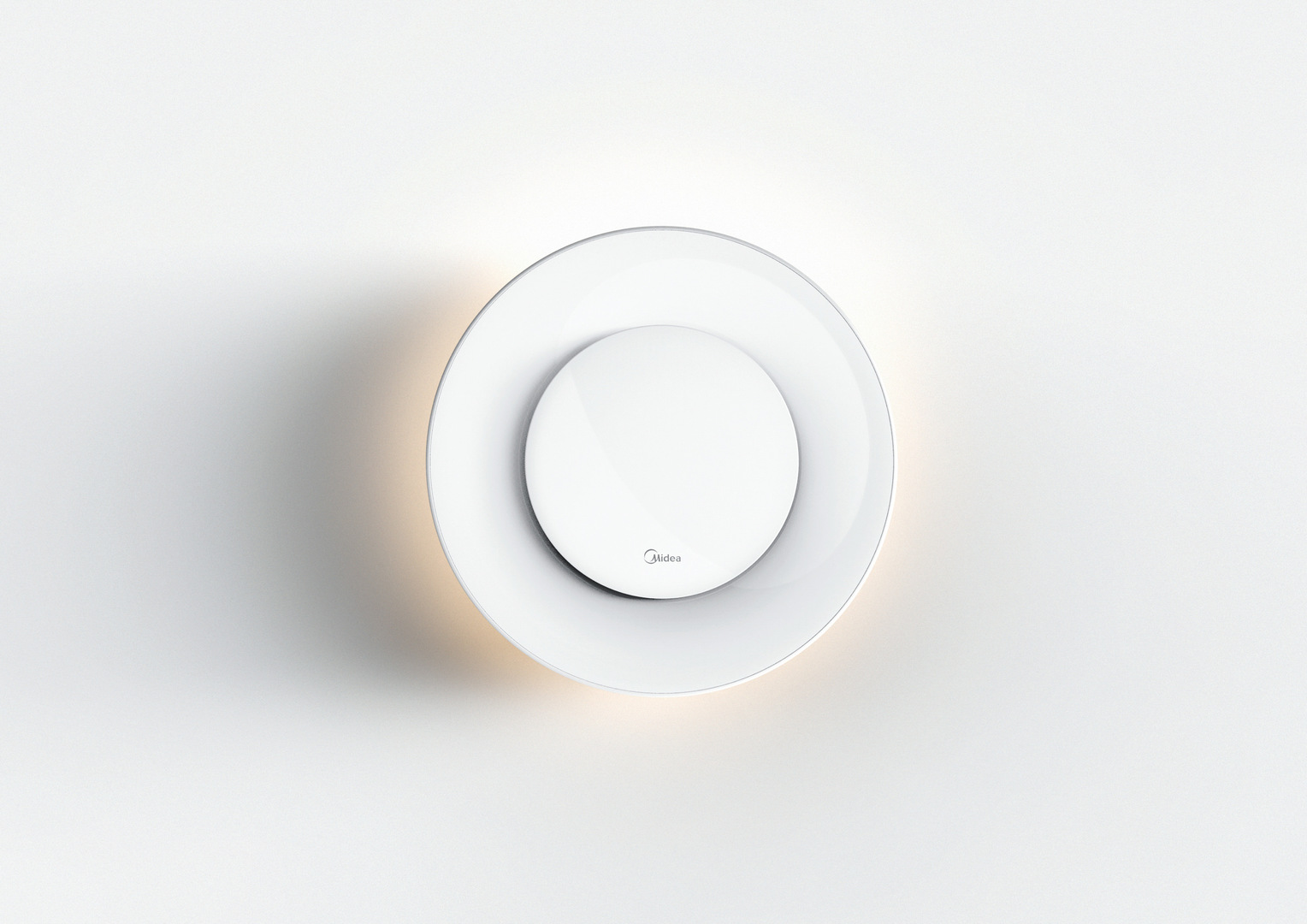 This wall-mounted circular air conditioner with its purist design provides both a comfortable room climate and, thanks to an integrated lighting function, also atmospheric illumination. The 360-degree circular air outlet optimises the air circulation area, resulting in a smooth and quiet operation of the unit. The light intensity adjusts automatically to the operating state and ambient brightness, thus creating a pleasant feeling of spaciousness.