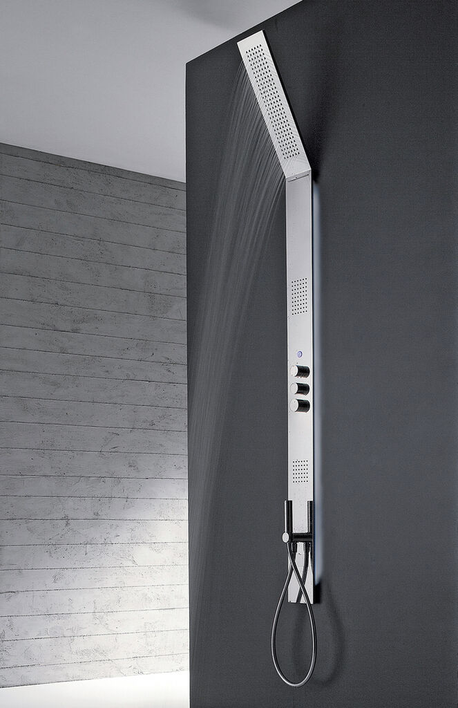 Thanks to the Flyfall Rain System the water seems to flow directly from the wall. All necessary water circulations required for an even filling of the shower head are unobtrusively integrated in the wall profile, which only measures 12.5 mm. The flow keeps the water sufficiently close to the wall. The design is available in three sizes, also as backlit versions. It is made of polished or brushed stainless steel and conveys intimacy and harmony.