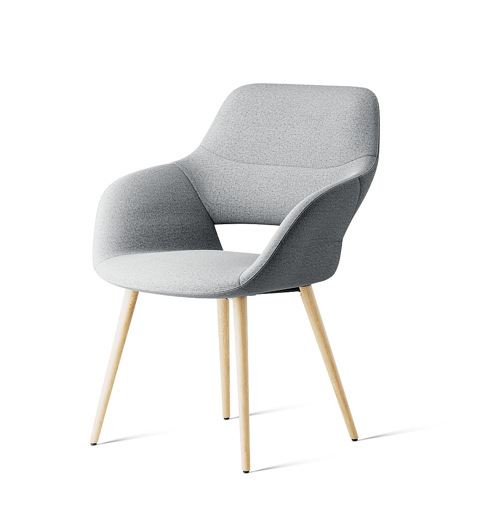 The Occo Conference is characterised by an airy and light appearance and high seating comfort and impresses with spacious, fully upholstered seat shells made of moulded plywood covered with comfort foam. It is available in many variants with two backrest heights in six different frame designs, for example with a four-legged frame made of colour-coated or bright chrome-plated tubular steel, legs made of solid oak wood or with a four-star frame on glides – as a more classic or particularly comfortable office chair.