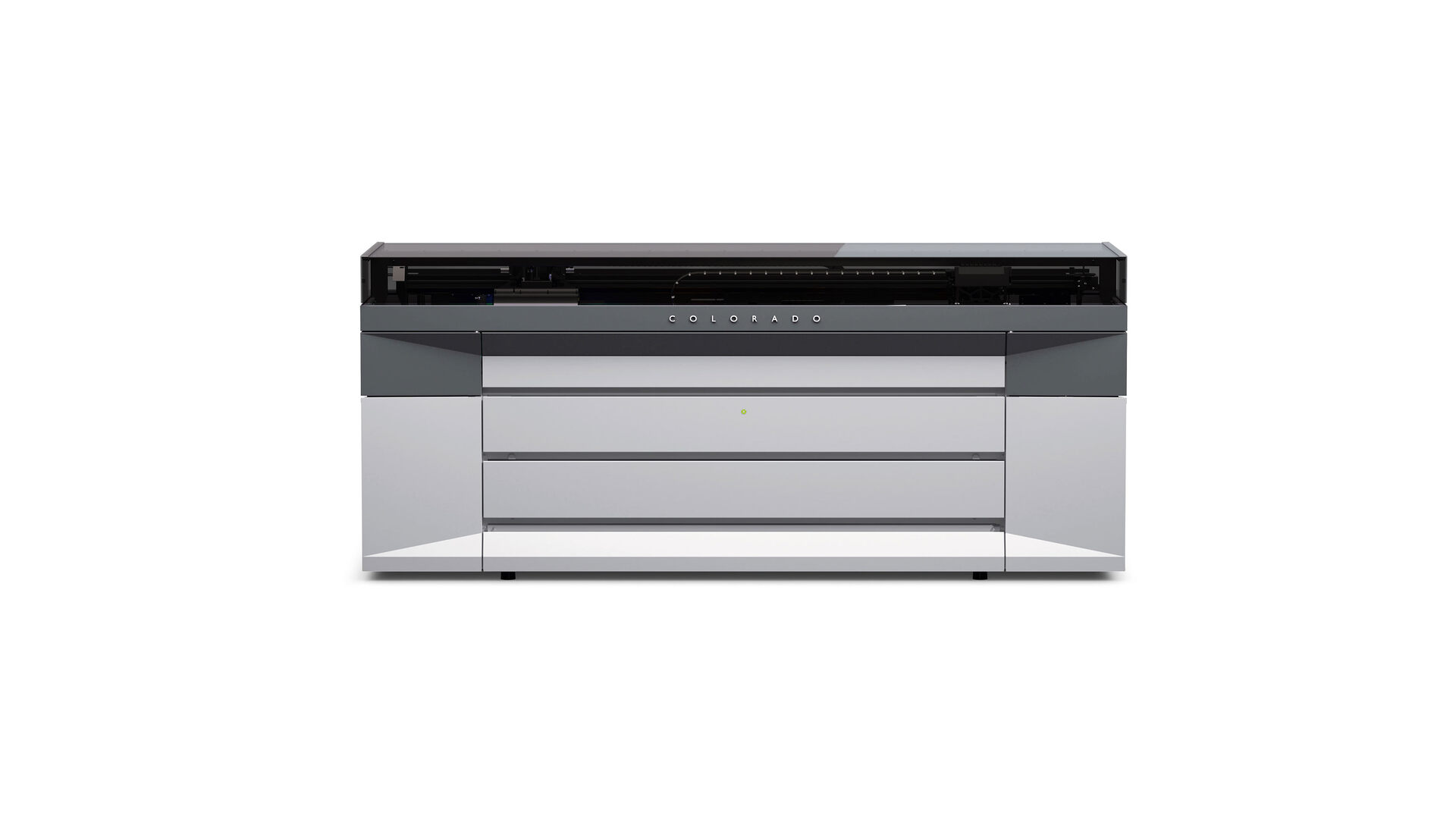 The striking design of the Océ Colorado 1640 visualises its advanced technology. The seamless transparent cover makes the printing process come alive in front of the user’s eyes.