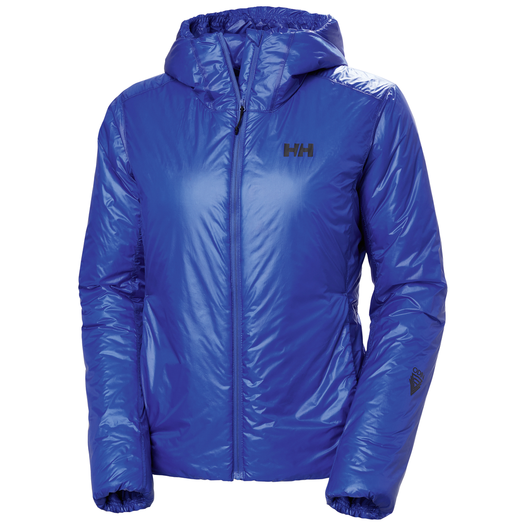 The hooded jacket Odin Everdown is specifically designed for cold days in the mountains. It combines a weatherproofing-treated 10-Denier ripstop upper fabric made from 100 percent recycled nylon with the innovative down fabric THINDOWN, in which the goose down is evenly distributed. This makes horizontal seams unnecessary and prevents cold spots; even with tears in the upper material, no feathers escape. The exceptionally lightweight jacket also features zipper-less pockets for quick hand warming and a RECCO reflector for increased safety.