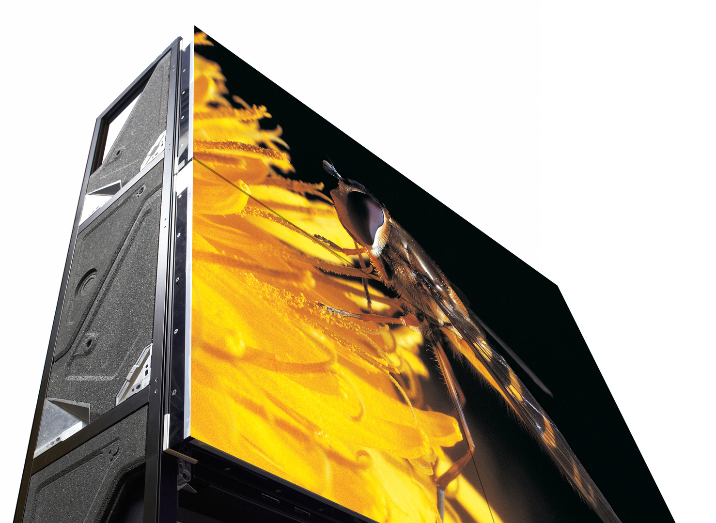 The OL-521 is a rear-projection video wall module conceptualised for fixed installation in industrial settings. Thanks to its modular construction, it can be set up in any desired wall size and extended later on as well. Due to its low depth of 45 cm and accessibility from the front, a more compact control room design is possible. Moreover, maintenance can take place at both the front and rear sides, eliminating the need for extra maintenance space behind the module. The image is created with LEDs which are protected from overheating by liquid cooling even when the unit is in continuous operation. Any changes in brightness and colour due to aging of the LEDs are corrected in real time.
