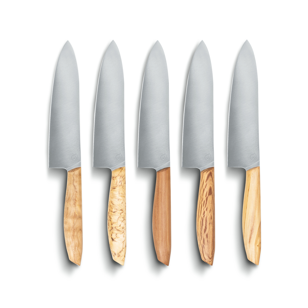 Various wooden handles lend the Olav Chef’s Knife an individual appeal. The high-quality workmanship of the materials ensures lasting durability.