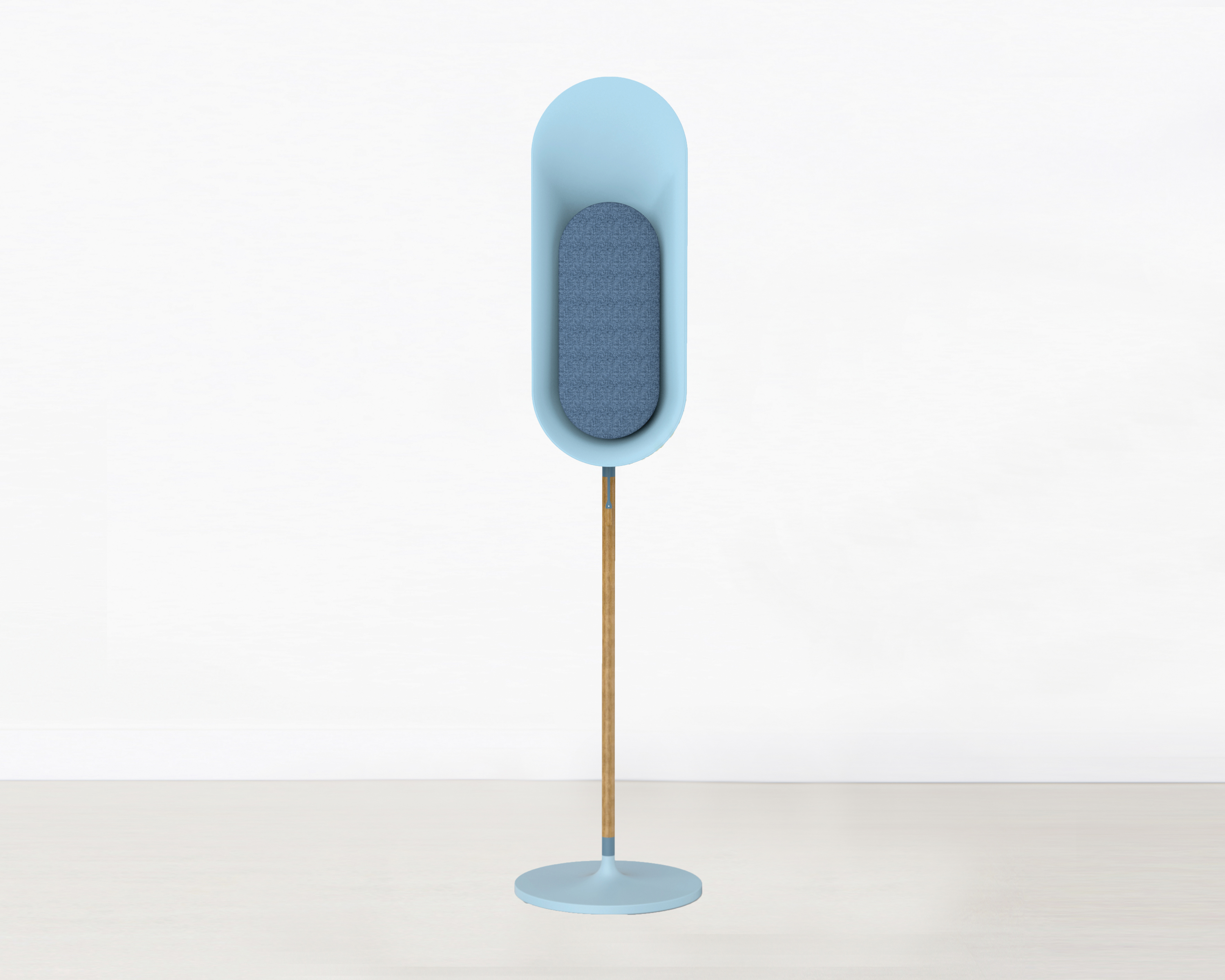 OLi is a standing speaker design that stands out in the corner of a room and allows sound to fill up the entire room. Providing intuitive and fuss-free operation, this speaker can be switched on and off with a single button. Switching it on also automatically activates the wireless connection to a music device, allowing users to connect OLi to music devices wirelessly and conveniently via Bluetooth capabilities or Wi-Fi connection. OLi’s primary objective is to optimise sound quality. It achieves this by projecting the sound from an optimal height. Encasing its speaker box within a hard box also creates a deeper and more amplified sound. However, this occasionally causes some unpleasant sounds – a problem that is mitigated by placing some soft fabric directly in front of the sound panel for a smoother and more pleasant sound experience. In terms of material choice, traditional music player designs tend to create a more premium look by using metal, glossy surfaces and high-definition solid colours. On the contrary, new players on the market have a more diversified CMF (colour, material, finish). OLi balances traditional and new with a minimalistic form accompanied by a matte surface and vibrant colours.