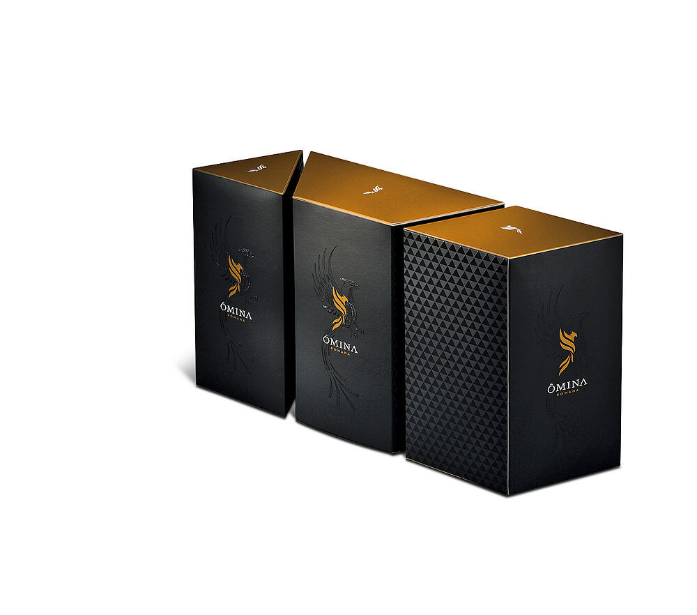 The logo of the Italian wine brand Ômina Romana, the illustration of a phoenix, conveys the renaissance of vineyards on the volcanic ash soils of the Alban Hills. The brand character is located between the parameters of science and the manufacturing concept. This is reflected in all components of the corporate design and forms the basis for the interaction of the design elements. The layout is clearly structured, while the colour palette has a mystical appeal that strongly contrasts with the black-and-white imagery.