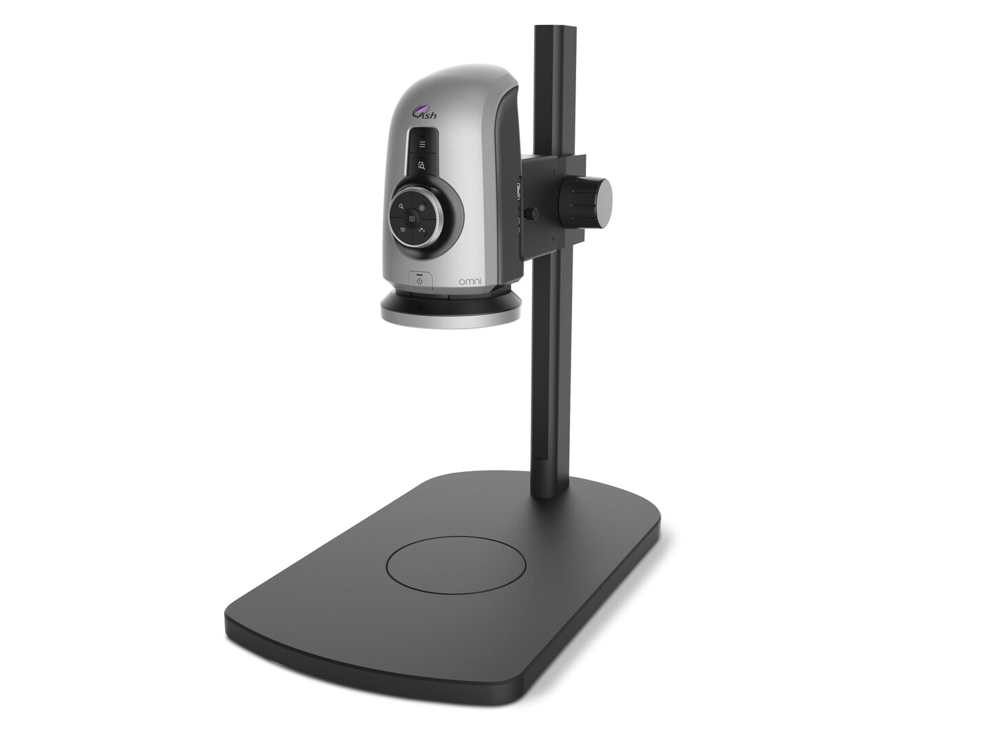 The digital microscope and measurement system Omni is used for the quality inspection of small precision components. The robust digital camera with detachable lighting module can be connected between any standard screen and camera mount to magnify images up to 120 times. Thanks to its digital technology, the device is much smaller and lighter than microscopes with optical lenses, allowing it to be used directly at the production line. Its key design feature is the rotary control dial.