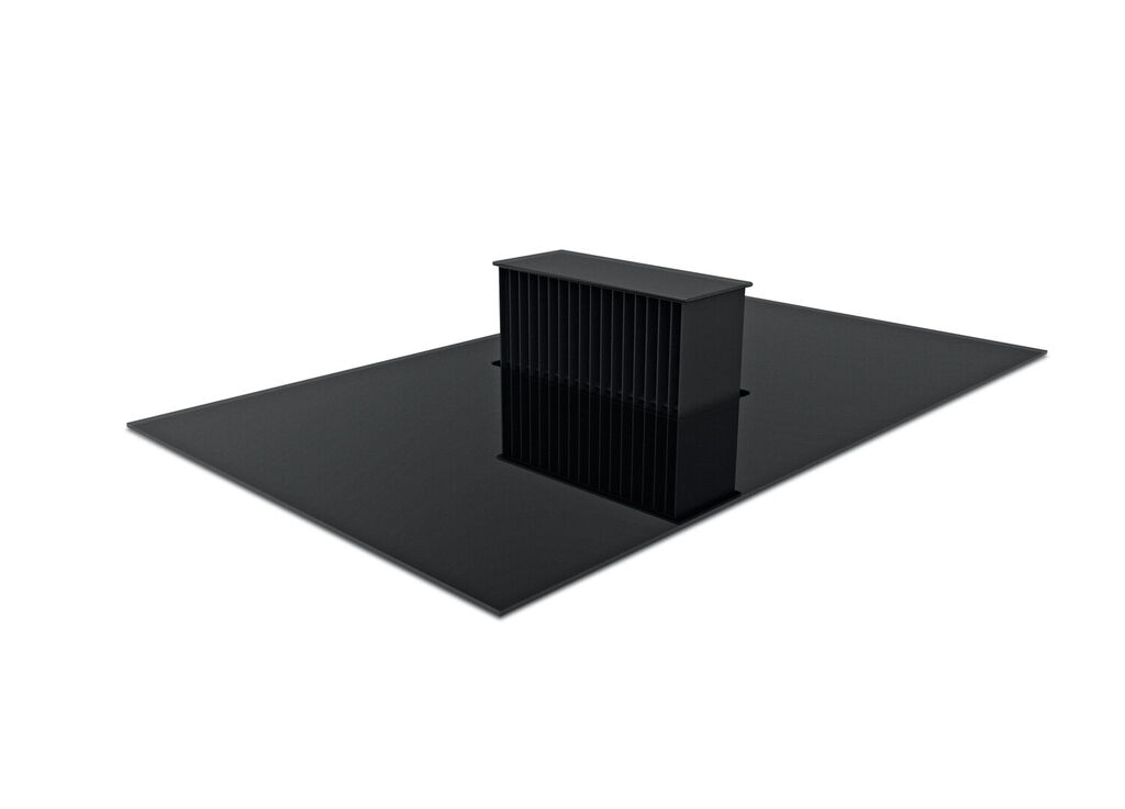One combines a range extractor and hob in one appliance and thus provides a smart form of kitchen air extraction. The One extractor is located directly between the four cooking zones. Thus, vapours and odours are extracted quickly and powerfully. When not in use it retracts into the hob. The hob itself is made of opaque black glass, designed in a minimalist style and exhibits only discreet markings.