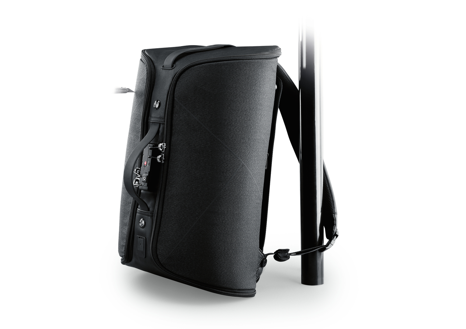 The main feature of this backpack is an ingenious anti-theft security system. To protect the contents from theft of any kind, it is fitted with various security components, including a double-layered, blast-proof zipper that runs through the whole bag, cut-resistant outer material, a TSA code lock, lockable clasps and RFID shielding technology. Even when folded up, the backpack can secure valuable property in minimal space both at home and on travels.