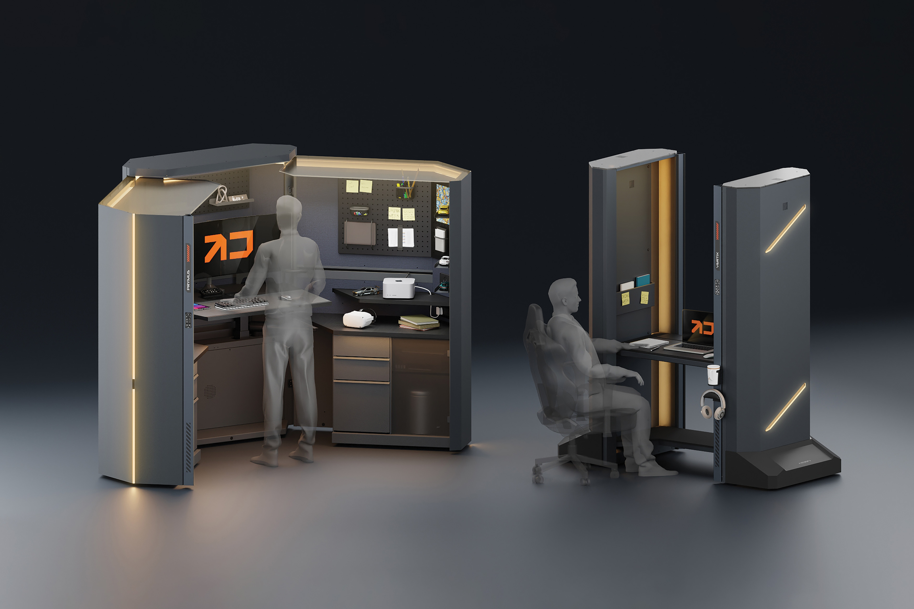 One Wire Series introduces Vertix and Prymus — convertible workstations that shift from sleek capsules to immersive workspaces in seconds. A unique open-close mechanism enables purposeful transitions that shift the mindset, supported by smart motorised height adjustment, adaptive lighting, spatial audio, and app-based touch controls. With this, the modern workspace becomes a responsive environment for focused work and immersive play. Red Dot Award: Design Concept | Concept | Commercial Furniture
