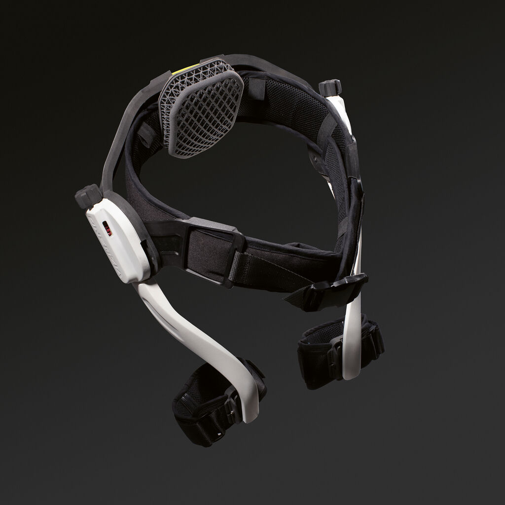 The passive hip exoskeleton Onerzia supports athletes during regeneration and walking after intensive exercise or injuries. Spring mechanisms on the hips mechanically facilitate leg movement in a natural way. The ergonomic design adapts to different body shapes and offers high wearing comfort. Two adjustment dials on the sides allow for the individual adjustment of the spring force so that muscle support, fatigue reduction and safe walking are specifically promoted.