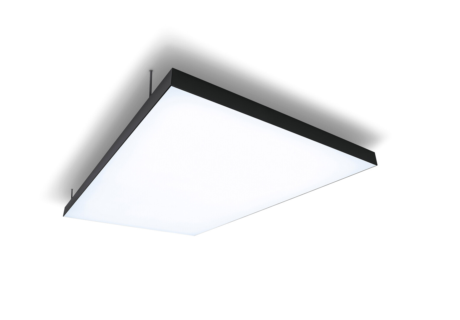 Inspired by natural daylight, this stylish ceiling light produces uniform room illumination. Invisible LED lamps that are concealed in a large fabric light unit create the impression of a white light ceiling surface. The glare-free lighting eliminates shadows so that the objects in the room can be seen more clearly. In addition to the convenient lighting, OneSpace also improves room acoustics by reducing irritating reflected sound.