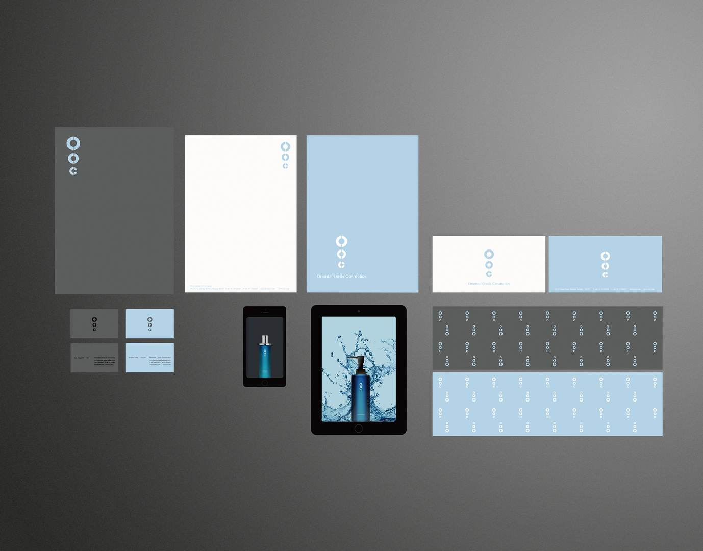 In developing the aesthetics of the brand design for OOC, a new cosmetics line produced with modern technology, emphasis was placed on the acronym of the logomark. With the goal of being easily recognised and memorised, the three capital letters are precisely designed to look like tiny drops of water, alluding to the natural, healthy and medicinal features of the products. The application area of the new corporate identity covers a wide range of media, from iPad and iPhone apps to the extensive list of templates for business stationery and reporting, as well as a series of new products.