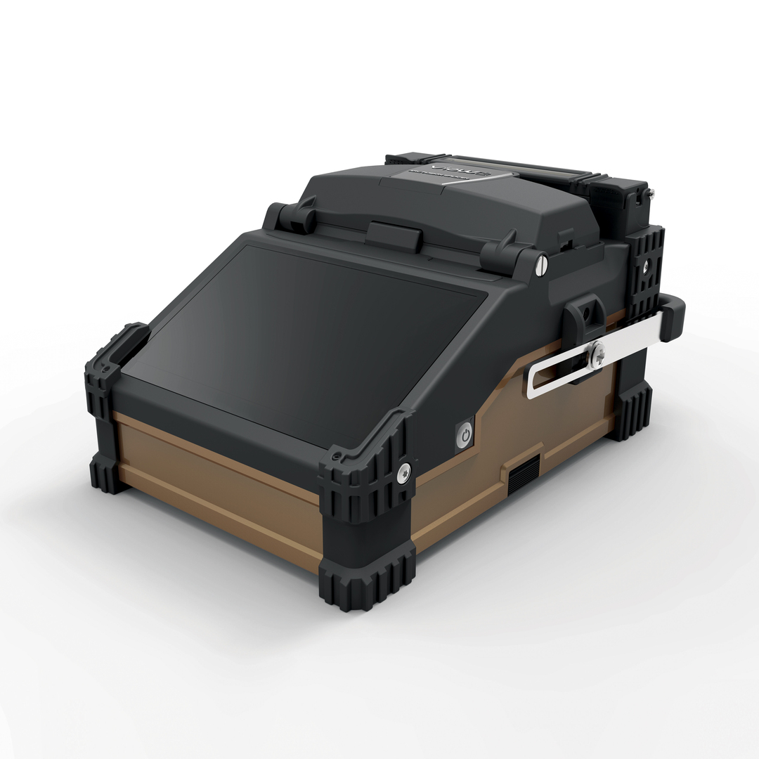 This is a device used in optical cable construction and maintenance of optical communication. Its working principle depends on a high-pressure arc to melt two fibres cross-section, and at the same time, to merge two optical fibres into one by gently pushing the high precision motion mechanism. Through structural innovation, the size of the wind-proof cover is reduced and more space is provided to expand the size of a touch screen. The full-screen operating mode provides a more intelligent user experience. With the addition of a detachable handle, the portability of the machine is also enhanced.